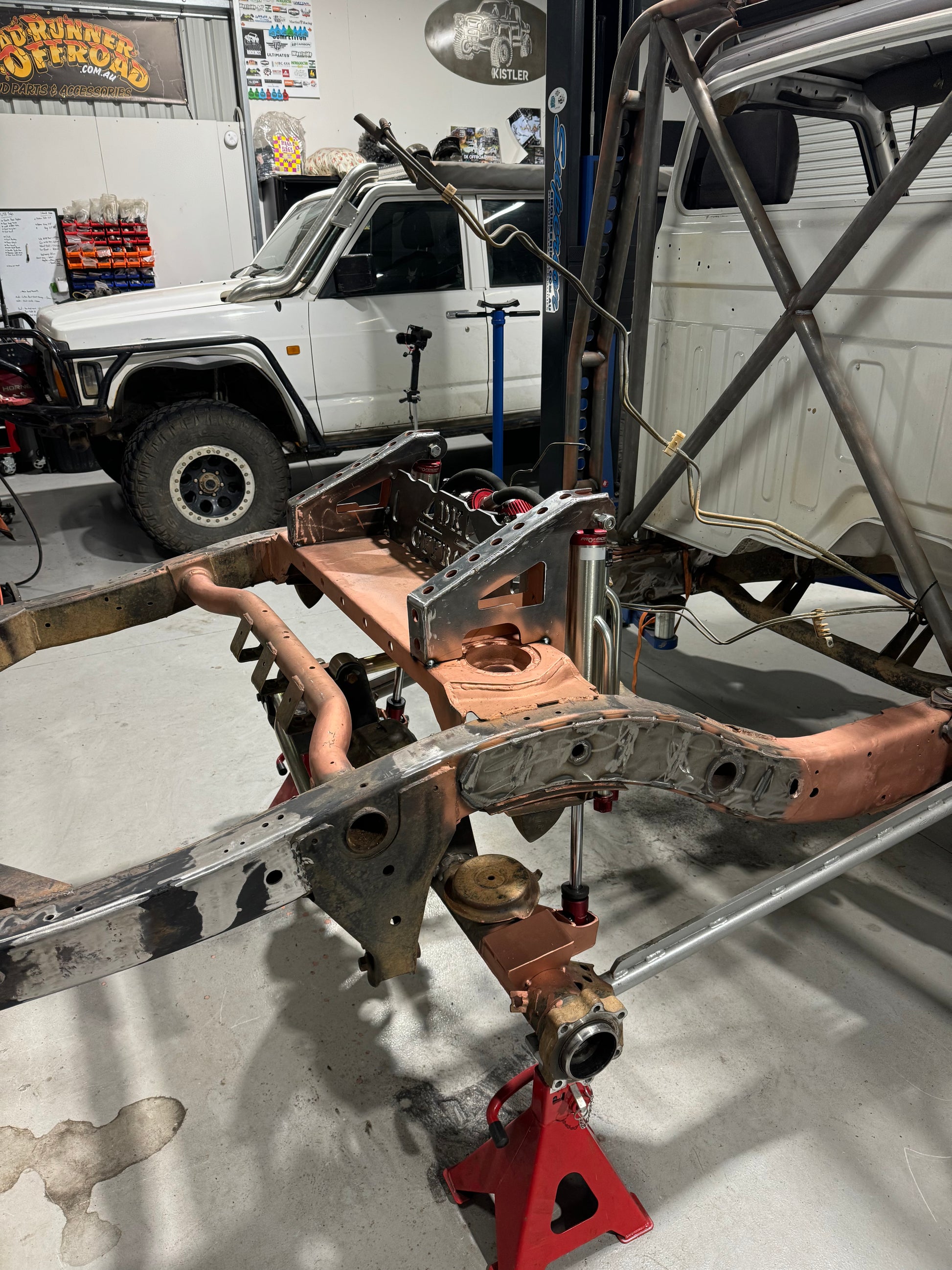 Complete Kit: Comes as a complete flat pack ready to assemble and weld together, you are required to drill out any necessary holes, slight clearancing may be required on the chassis end Panhard mount to stop the bypass tube fouling at full bump and a slight notch on the passenger side rail for the bypass tube on the rear mounted kits
