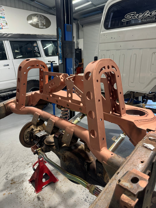 Components: Includes a 10mm weld-on plate with 10mm fine thread tapped holes and matching bolts, along with an 8mm bolt-on plate that is welded to the bar work.